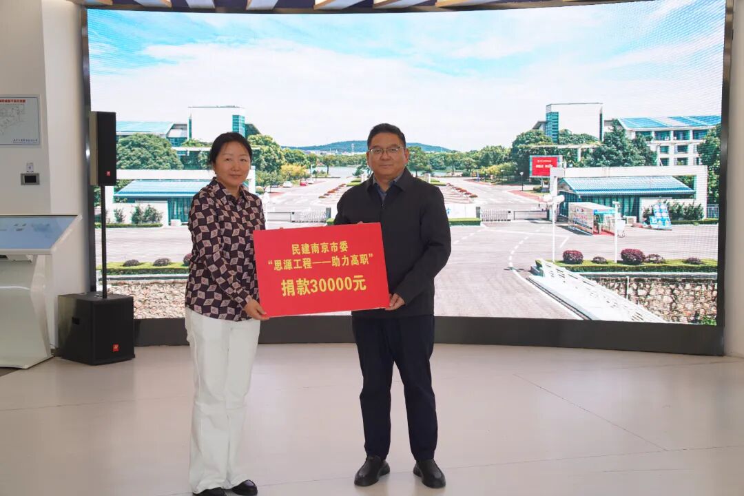 10月15日上午,民建南京市委会在南京工业职业技术大学开展“思源工程——助力高职”捐赠活动,向学校教育发展基金会捐赠3万元。南京工业职业技术大学党委副书记浦黄忠现场接受了捐款,并代表基金会授予市委会捐赠证书。