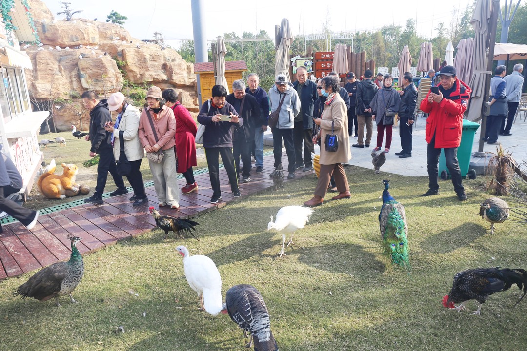 凤凰岛国家湿地公园是集淮河入江水道河流湿地保护与科普宣教于一体的生态系统。在凤凰岛公园,大家重点游览了萌宠乐园与飞鸟乐园两大主题区域。老人们与小动物们进行近距离亲密互动,还观看了“鹦鹉骑车”等特色节目,并纷纷拿起手机记录这一美好瞬间。观光车穿梭于古桑树林、运河美术馆、金湾大坝等景点,老会员们认真聆听专业讲解,了解水域变迁史,对湿地保护成果发出由衷赞叹。